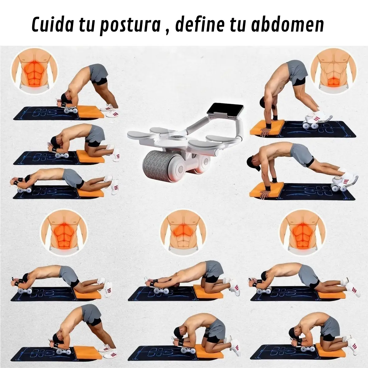 ✨ Rodillo abdominal de 4 soportes con rebote automático
